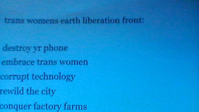 The Trans Women's Liberation Front (TWELF)'s seminal poster-zine describing central principles. One page zine: paste it to your wall, or order bulk and airdrop.